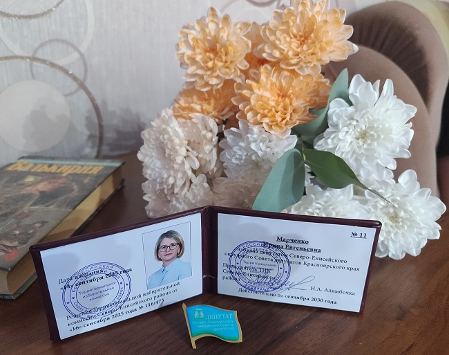 Решением территориальной избирательной комиссии Северо-Енисейского района от 16.09.2025 года Марченко Ирина Евгеньевна избрана депутатом Северо-Енисейского окружного Совета депутатов Красноярского края